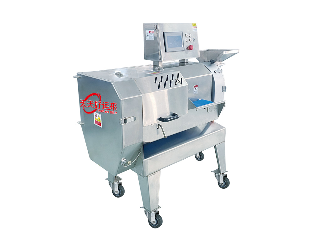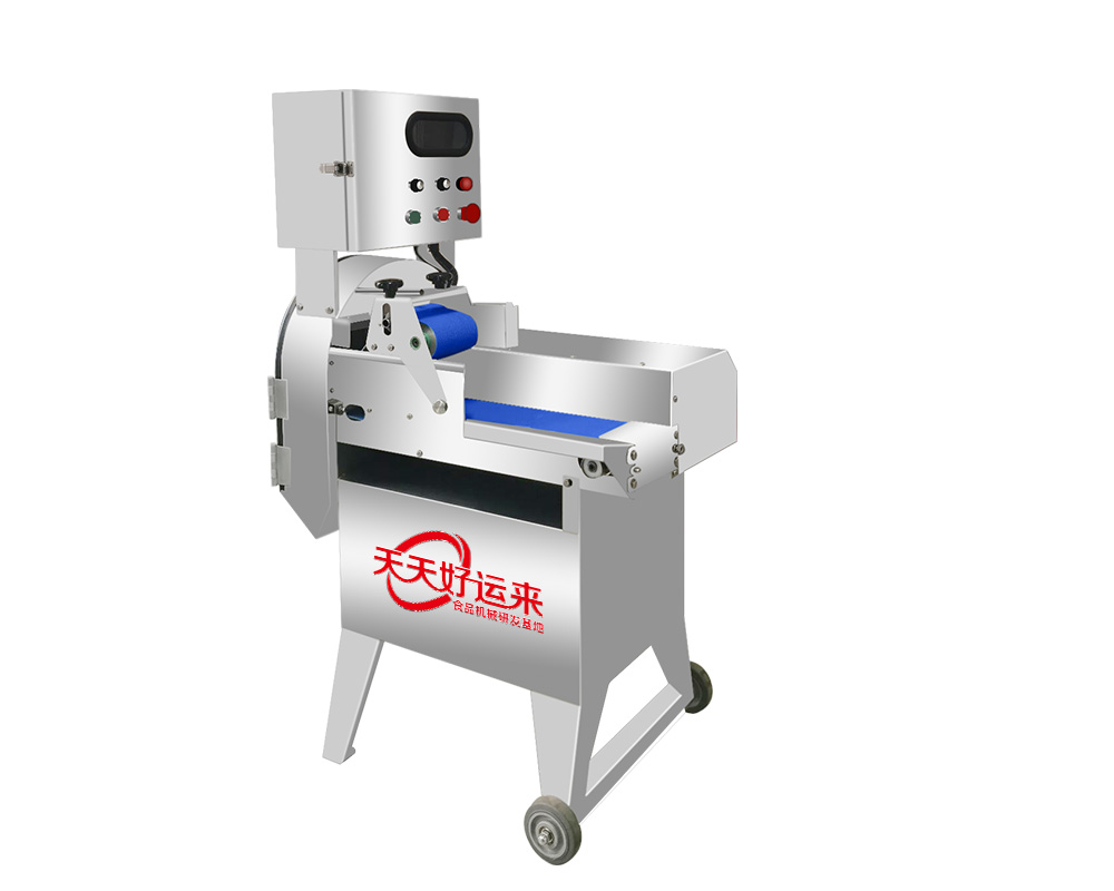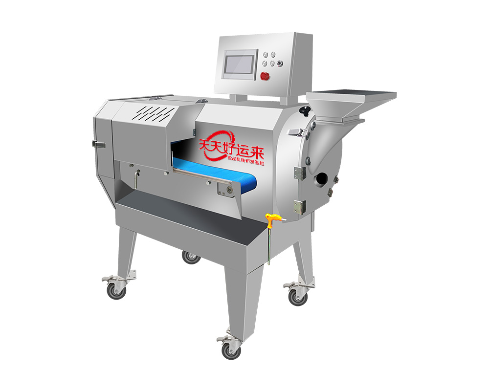 本設(shè)備幾乎可切任何瓜果蔬菜,如:切片、絲、丁,末、段等;具備雙調(diào)頻功能,一頭是切葉菜類,如長(zhǎng)蔥,蒜苗,韭菜,芹菜,白菜,青菜等等,一頭是切球根莖類,如蘿卜,土豆,紅薯,芋頭,筍,洋蔥,茄子,蘋果,生姜等等眾多瓜果類蔬菜。葉菜類的輸送帶速度和轉(zhuǎn)刀速度采用PLC數(shù)控屏操作,均可獨(dú)立控制,葉菜切割規(guī)格:1~50mm可調(diào)。切部份根莖類;根徑部份刀盤范圍:片:2-10MM,絲:2-6MM,丁:8MM、10MM、12MM、15MM、20MM選一;一機(jī)多用,功能強(qiáng)大,產(chǎn)量高,操作簡(jiǎn)單,皮帶可快速拆卸,并可水槍沖洗,清洗方便。