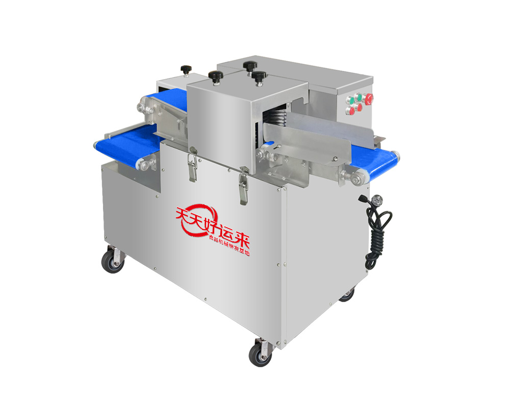 采用輸送帶進(jìn)料、出料,切片厚度可按照用戶要求制作,可快速更換不同的刀組,滿足用戶各種規(guī)格的切片要求。能快速拆裝進(jìn)、出料 輸送帶及圓刀片組,整機采用防水設(shè)計,全不銹鋼制作,可直接用水沖洗機器。產(chǎn)品切割整齊,誤差非常小,方便操作,能實現(xiàn)產(chǎn)品快 速包裝。標(biāo)配尺寸25毫米;其它尺寸可定制,主切鮮肉冷鮮肉。一次成條,二次成丁。 | |