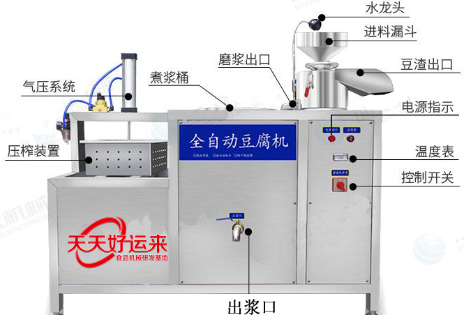 我公司生產(chǎn)即食豆?jié){、豆腐機在國內(nèi)是較早的企業(yè),多年來通過對設(shè)備的不斷改進(jìn),利用現(xiàn)代科技與傳統(tǒng)工藝的完美結(jié)合。使設(shè)備外觀設(shè)計美觀、時尚,操作簡單,主要有磨漿機、煮漿桶、蒸氣機、成型機等組成。機器采用不銹鋼制造,干凈衛(wèi)生,技術(shù)領(lǐng)先,質(zhì)量可靠,經(jīng)久耐用。實現(xiàn)了生產(chǎn)過程自動化,具有高效、省時、耗能低、占地小、無污染等優(yōu)點。而且采用先進(jìn)磨漿技術(shù),瞬間加熱工藝,保證了蛋白質(zhì)不受破壞,從而使生產(chǎn)出來的豆制品營養(yǎng)更豐富,味道更鮮美。工藝流程: 將浸泡好的黃豆由高速分離磨漿機加工,排出豆渣,產(chǎn)出的豆?jié){經(jīng)過蒸汽加熱達(dá)到去腥,并煮漿均質(zhì),并添加輔助原料消泡、凝固劑(如鹵水、石膏、內(nèi)脂、酸漿等)、成型和深加工處理便可產(chǎn)生出營養(yǎng)豐富的豆制品如:豆?jié){、豆腐腦、豆腐、豆桿、豆皮、素雞、豆泡等制品,適用于賓館、超市、飯店、學(xué)校、企業(yè)食堂、工程店及食品廠等。