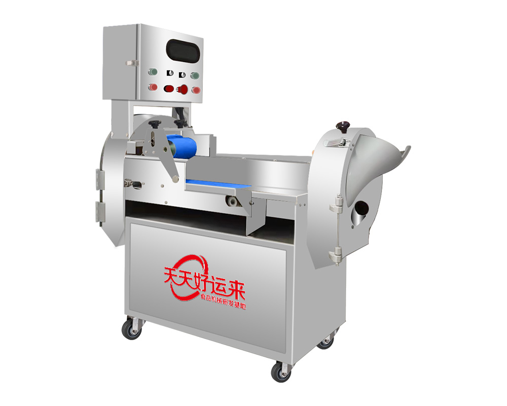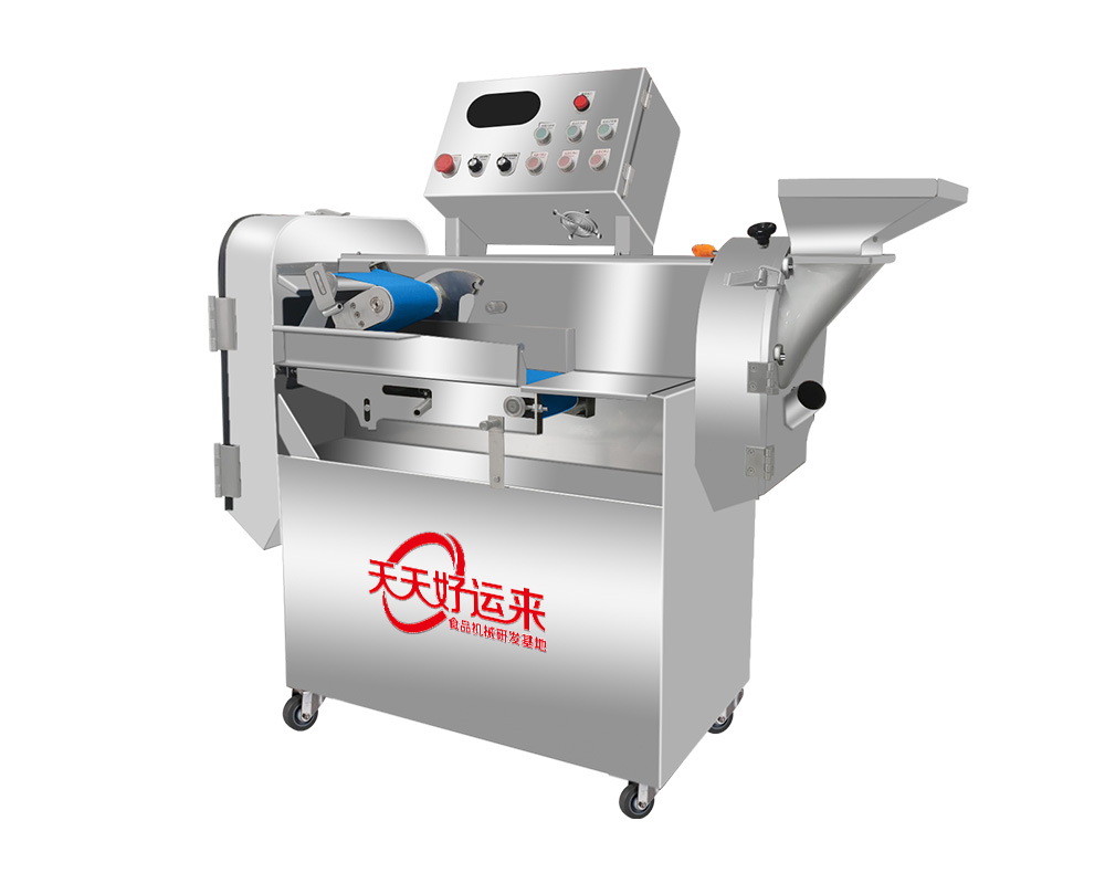 本設(shè)備幾乎可切任何瓜果蔬菜,如:切片、絲、丁,末、段等;具備雙調(diào)頻功能,一頭是切葉菜類,如長(zhǎng)蔥,蒜苗,韭菜,芹菜,白菜,青菜等等,一頭是切球根莖類,如蘿卜,土豆,紅薯,芋頭,筍,洋蔥,茄子,蘋果,生姜等等眾多瓜果類蔬菜。葉菜類的輸送帶速度和轉(zhuǎn)刀速度采用PLC數(shù)控屏操作,均可獨(dú)立控制,葉菜切割規(guī)格:1~50mm可調(diào)。切部份根莖類;根徑部份刀盤范圍:片:2-10MM,絲:2-6MM,丁:8MM、10MM、12MM、15MM、20MM選一;一機(jī)多用,功能強(qiáng)大,產(chǎn)量高,操作簡(jiǎn)單,皮帶可快速拆卸,并可水槍沖洗,清洗方便。